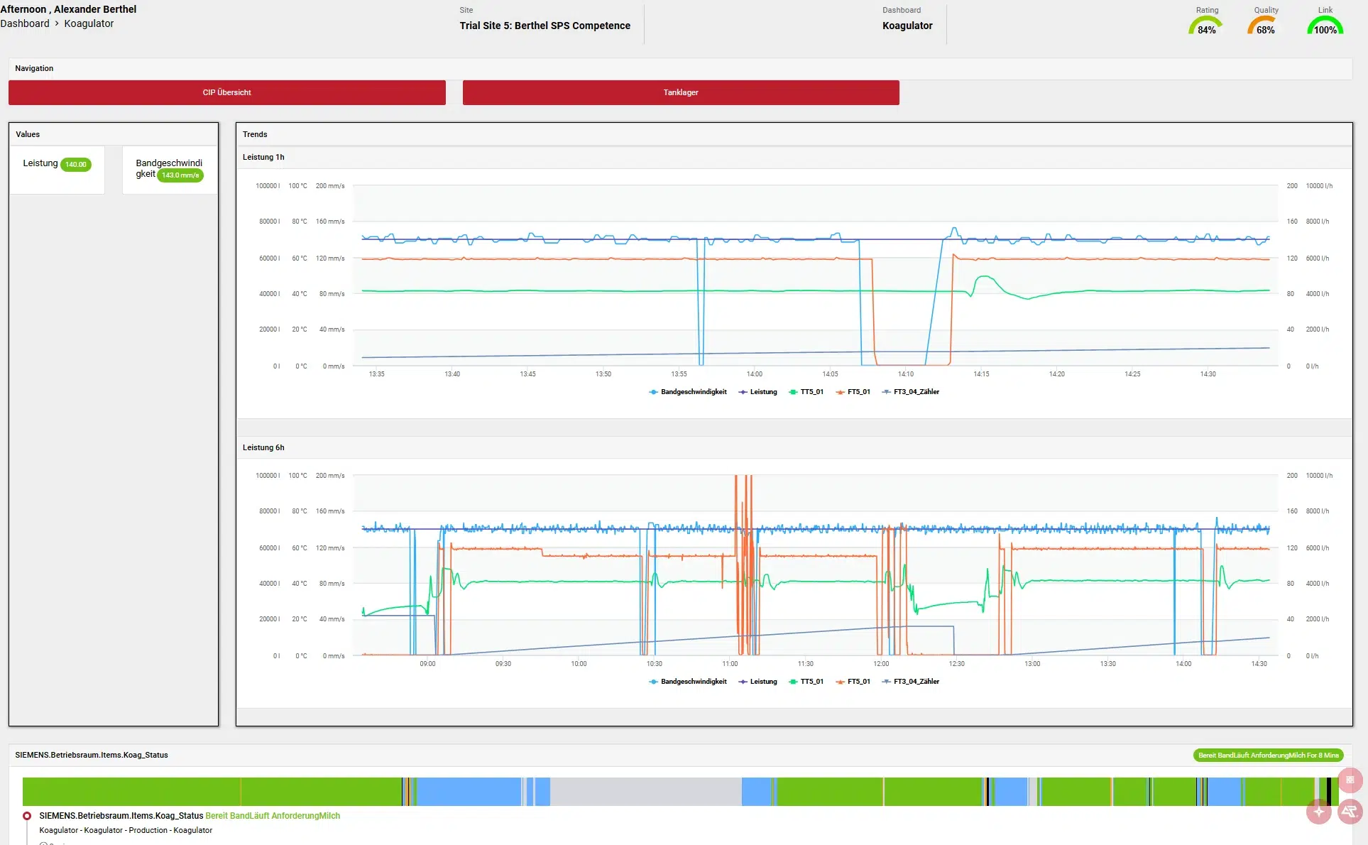 - Echtzeit-Daten aus Ihrer Maschine fehlen bislang. Es ist remote (noch) nicht erfassbar: Läuft die Maschine oder steht sie still?